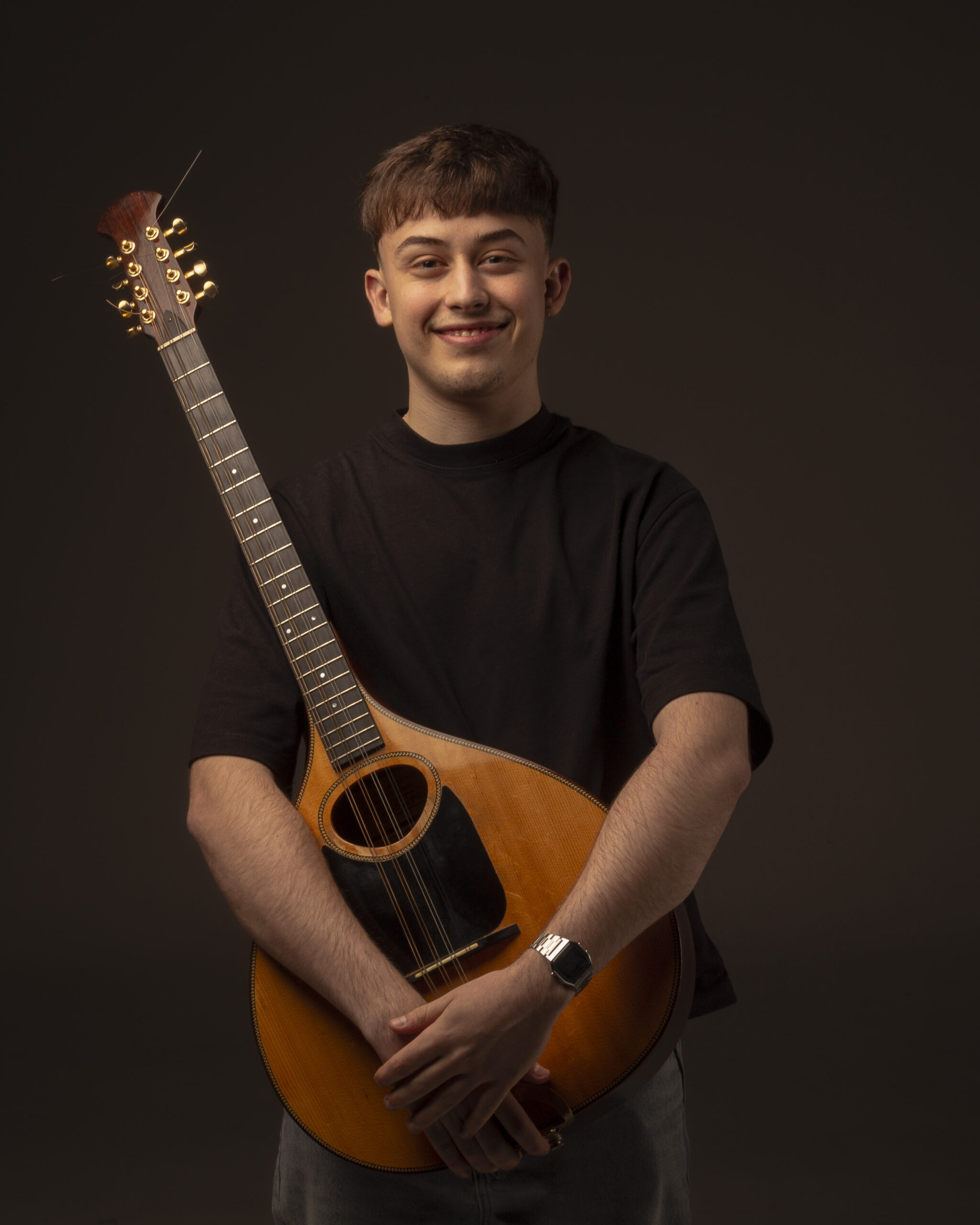 Julin ye el más xoven del grupu, dende neñu na escena folk asturiana. Güei ya ye una realidá, un de los meyores bouzukistas de la actualidá. Y cuidau que col vigulín mete mieu. El relevu xeneracional ta en bones manes.